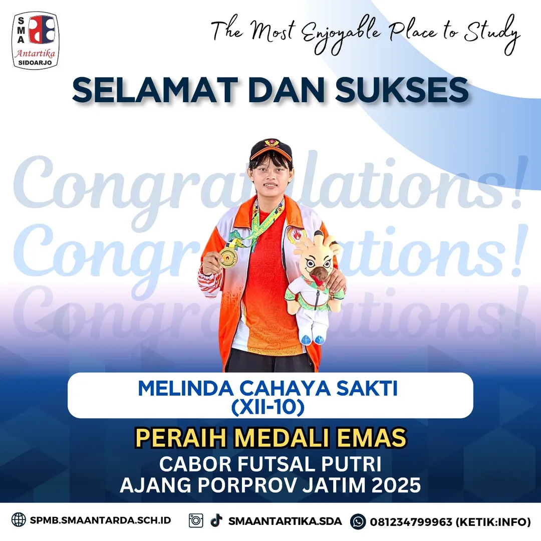 SMA Antartika Sidoarjo kembali menorehkan prestasi membanggakan. Melinda Cahaya, siswi kelas XII-10, berhasil meraih Medali Emas pada ajang Pekan Olahraga